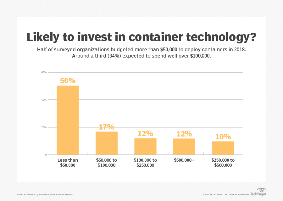 考虑一个容器部署计划,该计划在新的基础架构,角色和服务中投入100,000美元。 尽管就平均企业IT预算而言,10万美元并不是一笔巨大的数额,但绝大多数典型预算,大多数组织中的70%至80%,都用于持续运营而不是新投资。容器可能会占用新投资分配的很大一部分,甚至超过它,但是它们的采用是一个高优先级。 随着生产容器基础设施随着时间的推移而扩大,这个最初的重大成