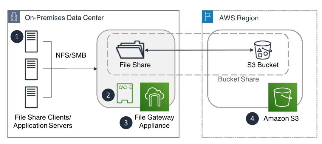 1. 在文件网关配置中,使用通过AWS存储网关导出的NFS或SMB文件共享以文件的形式访问对象。