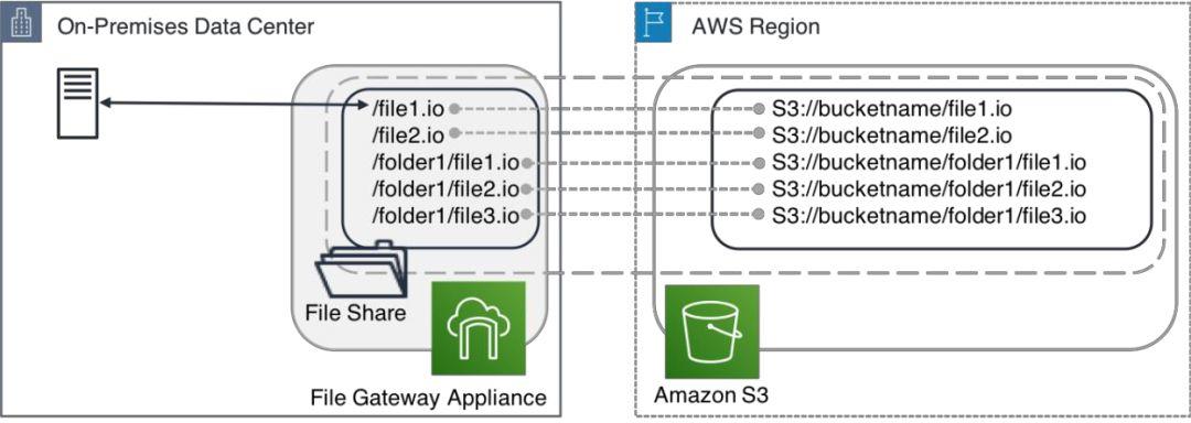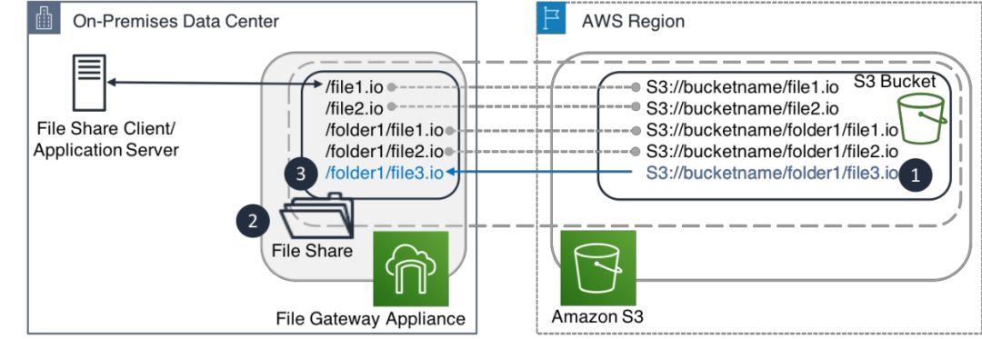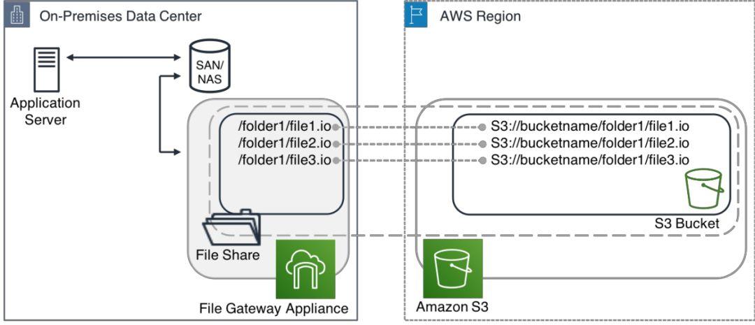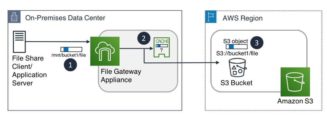 文件网关能在私有数据中心和AWS之间有效地通信。传统的NAS协议(SMB和NFS)被转换为对象存储API调用。这使得文件网关成为寻求分层存储文件或备份数据的组织的理想组件,这些数据具有低延迟的本地访问和云中的持久存储。