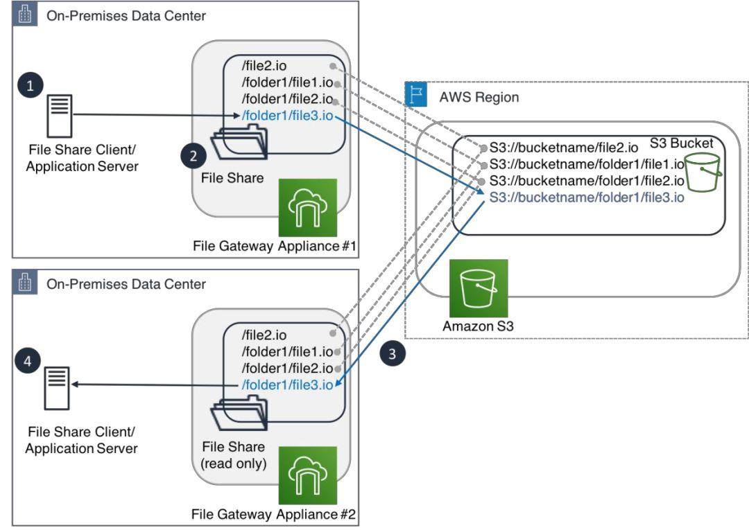 3. 其他贡献者在与文件网关关联的AmazonS3 bucket (bucket share)中所作的更改,在执行了RefreshCacheAPI之后,文件网关能识别其中的改动。