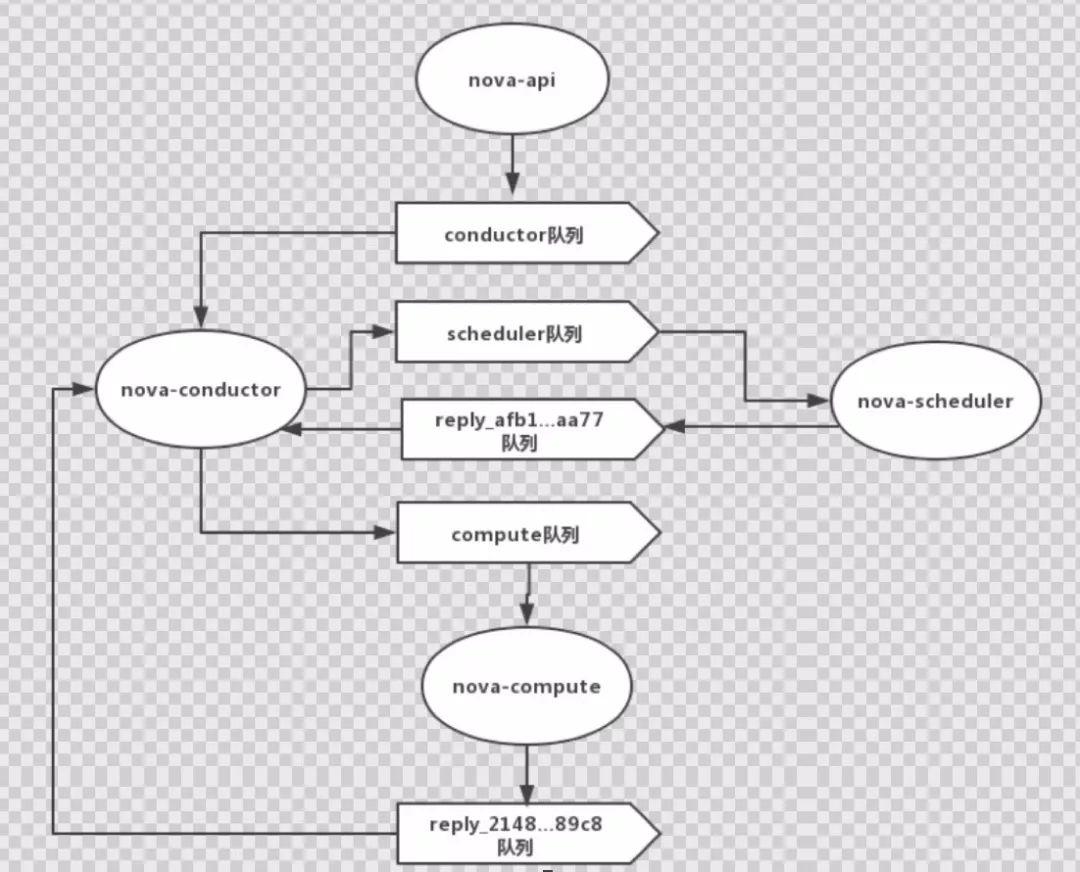(1)nova-api接收到前端创建虚拟机的命令,把命令发送到conductor队列。