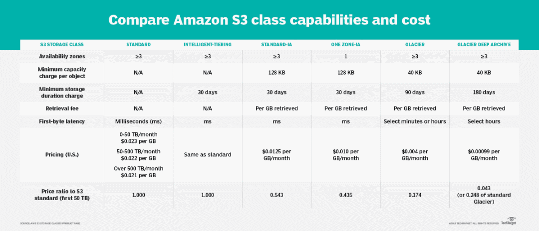 https://searchaws.techtarget.com/tip/Analyze-Amazon-S3-storage-classes-from-Standard-to-Glacie