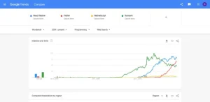 根据Google趋势,Flutter是第二大领先语言,其次是React Native,以在2020年开发跨平台移动应用程序