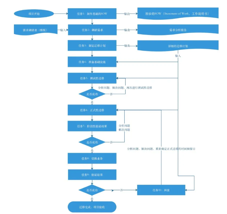 本文档后续章节将主要围绕图1所示的上云迁移任务和流程示意图进行细化讲解。
