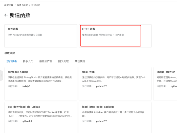 新建函数使用HTTP 函数,新手也可以尝试使用模版函数