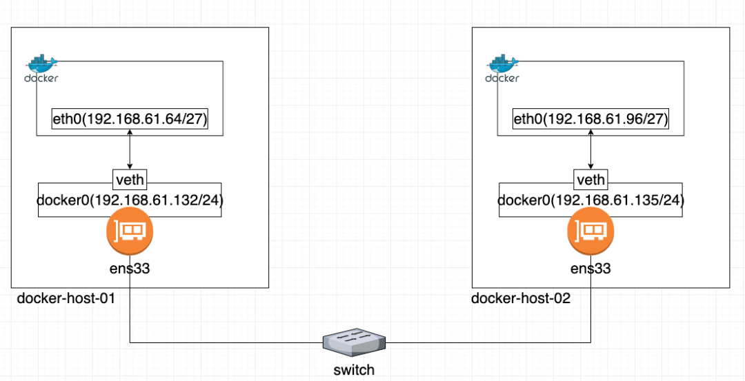 容器通信过程中不在需要NAT的转换,优点是性能提升,容器及Docker宿主机IP统一管理;缺点是,容器及Docker宿主机IP统一管理之后带来的IP地址分配变复杂了;下面就来实战一下这种场景。