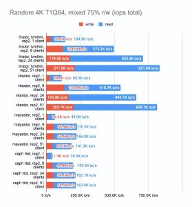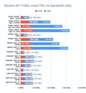 - Ceph:(https://kvaps.github.io/images/posts/Comparing-Ceph-LINSTOR-Mayastor-and-Vitastor-storage-performance-in-Kubernetes/ceph.html).