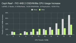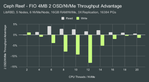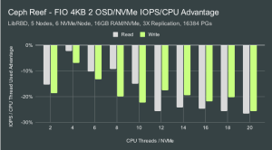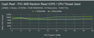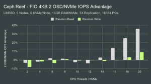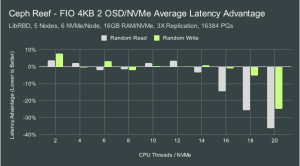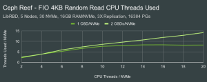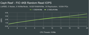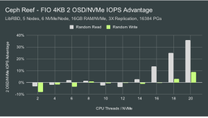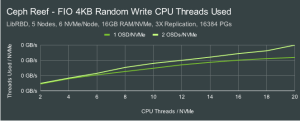 在高 CPU 线程数下,随机读取比随机写入更能从多个 OSD 中受益。 -