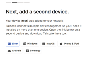等待第二台服务器安装完成,加入后会得到以下提示 Tailscale 网络中的每台设备都有一个私有 100.x.y.z IP 地址, 每个协议都有效 – SSH、RDP、HTTP、Minecraft – 在 Tailscale 运行时使用您想要的任何协议。