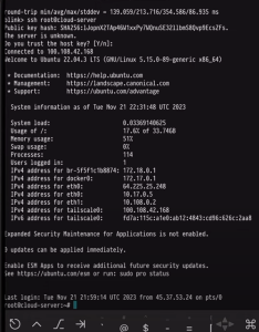 接下来使用tailscale set –ssh 使得ssh功能可以添加到tailscale服务器,从而可以在任意端上远程登陆,以手机端为例,操作效果如下