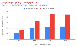 本测试表明:扩展 Ceph 集群节点不仅能提升原始存储容量,还可按比例增强吞吐量与运行效率。对于包含备份、媒体处理流水线或 AI 训练集暂存等大对象工作负载的场景,这种水平扩展模式至关重要。在保持配置一致性与适度调优的前提下,Ceph 对象网关(RGW)能够实现线性且可预测的扩展,以满足持续增长的性能需求。